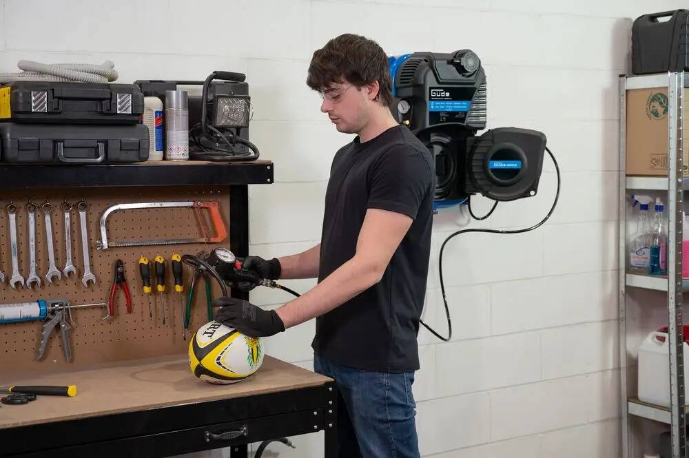 Willst du in der Garage oder deiner Werkstatt Platz sparen, solltest du den Güde Wandkompressor GWK 160/8/2 ST ins Auge fassen. Mit der Möglichkeit zur Wandmontage bleibt der Boden frei für andere wichtige Dinge. Der Güde GWK 160/8/2 ST bietet einen maximalen Druck von acht Bar. Hier sollten die meisten Anwender zufriedengestellt werden. Sei es zum Aufpumpen von Autoreifen, Motorradreifen, Fahrradreifen, Luftmatratzen oder Bällen. Ein innovatives Feature des GWK 160/8/2 ST ist die integrierte Automatik-Schlauchtrommel. Sie ermöglicht einen Arbeitsradius von neun Metern und lässt sich um 180 Grad schwenken. So erreicht man mühelos alle Ecken des Arbeitsbereichs, auch außerhalb der Garage. Der Druckluftschlauch besteht aus einem gewebeverstärkten Material, das sowohl ölbeständig als auch bei Temperaturen bis minus 20 Grad aushält. Selbst das Überfahren mit einem Auto stellt für den Schlauch kein Problem dar.