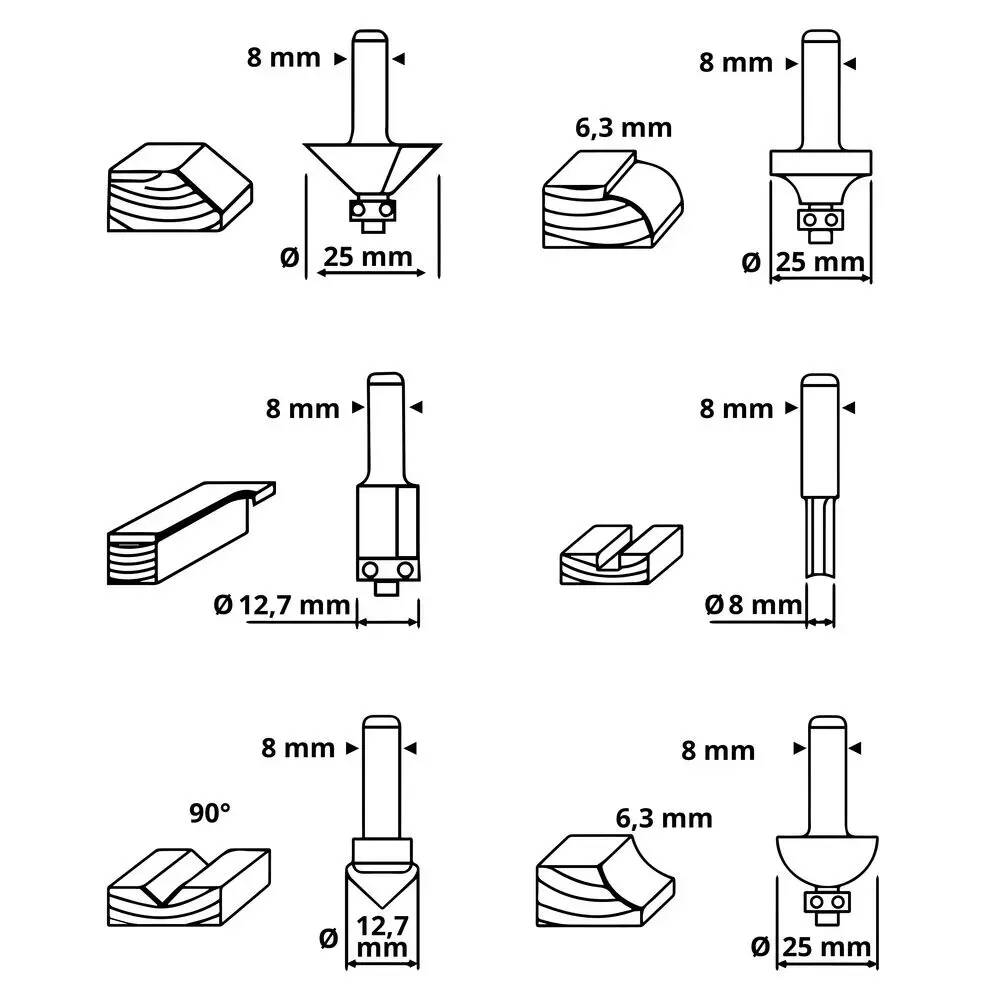 Oberfräser-Satz 6-tlg. - Hersteller Artikel-Nr.: 58315 - EAN: 4015671583154